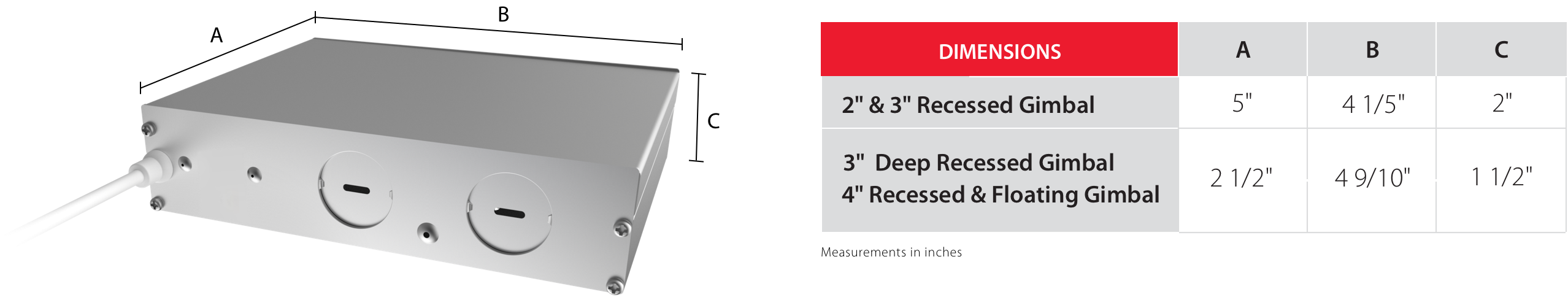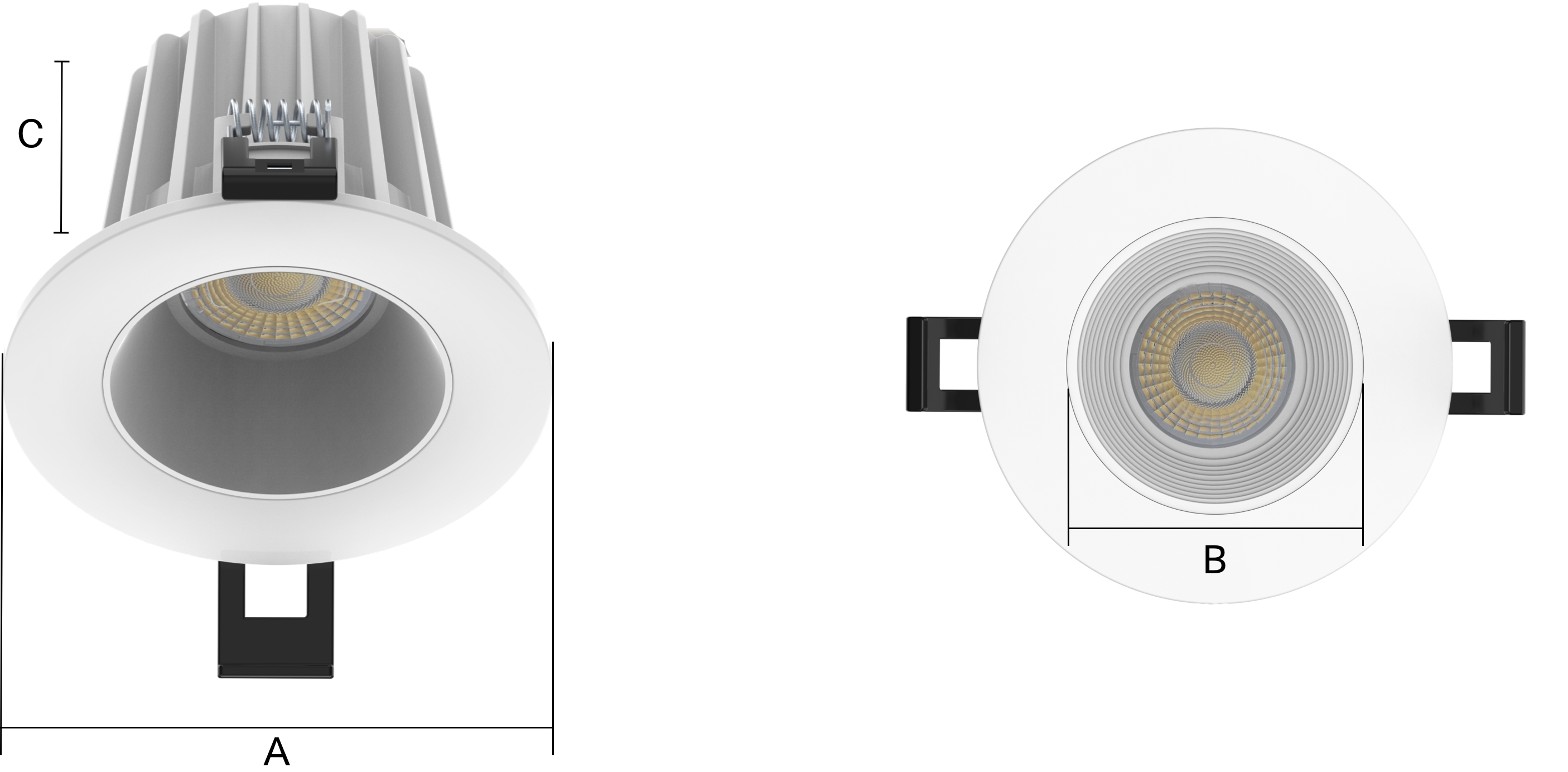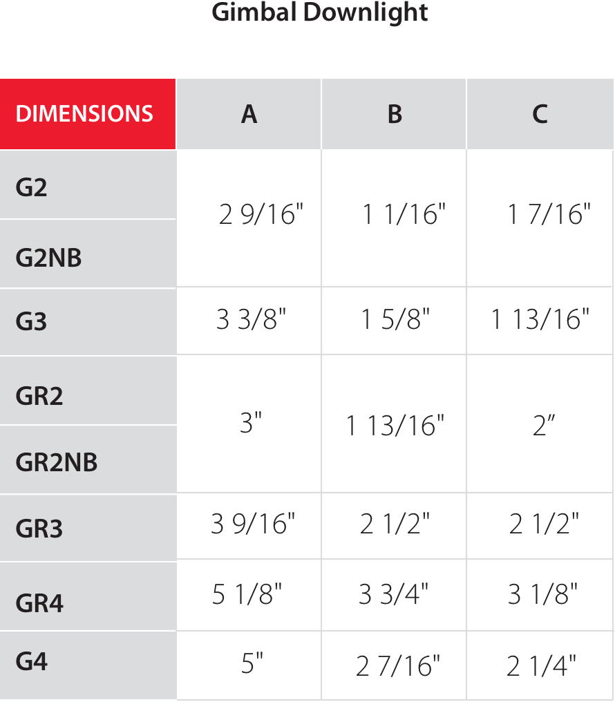 Available in 2”, 3” and 4” diameters, and in five color temperatures, all downlights deliver 90+ CRI for accurate color rendering and are dimmable to 10% with most standard TRIAC dimmers (120V). 2" model has 20° beam angle and others are 38°.