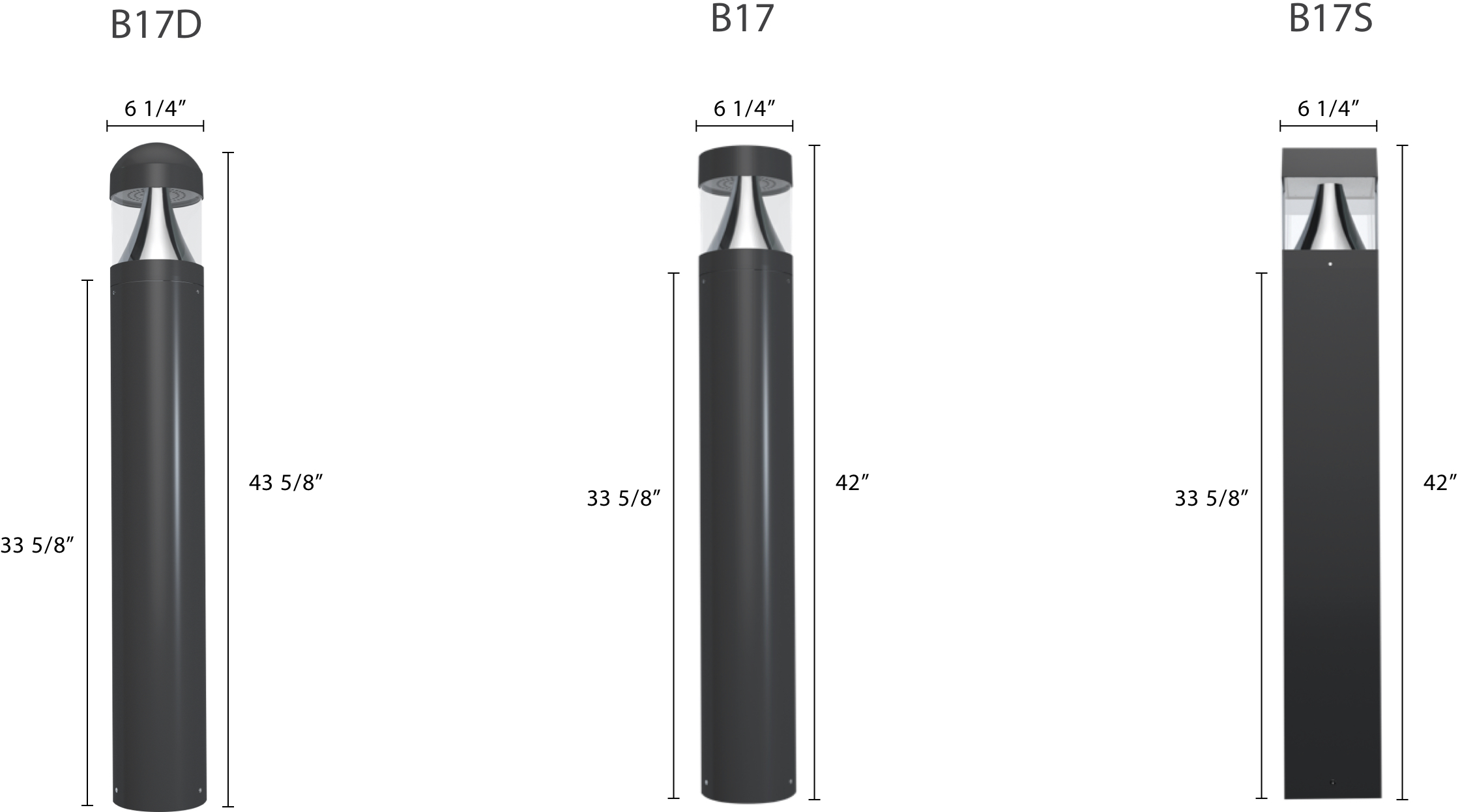 When you want to maximize installation flexibility in the field, B17s clear the path! With selectable wattage (24W/19W/14W) and selectable CCT (3000/4000/5000K), these bollards keep your options wide open. They also include an integrated on/off photocell for an additional level of control.