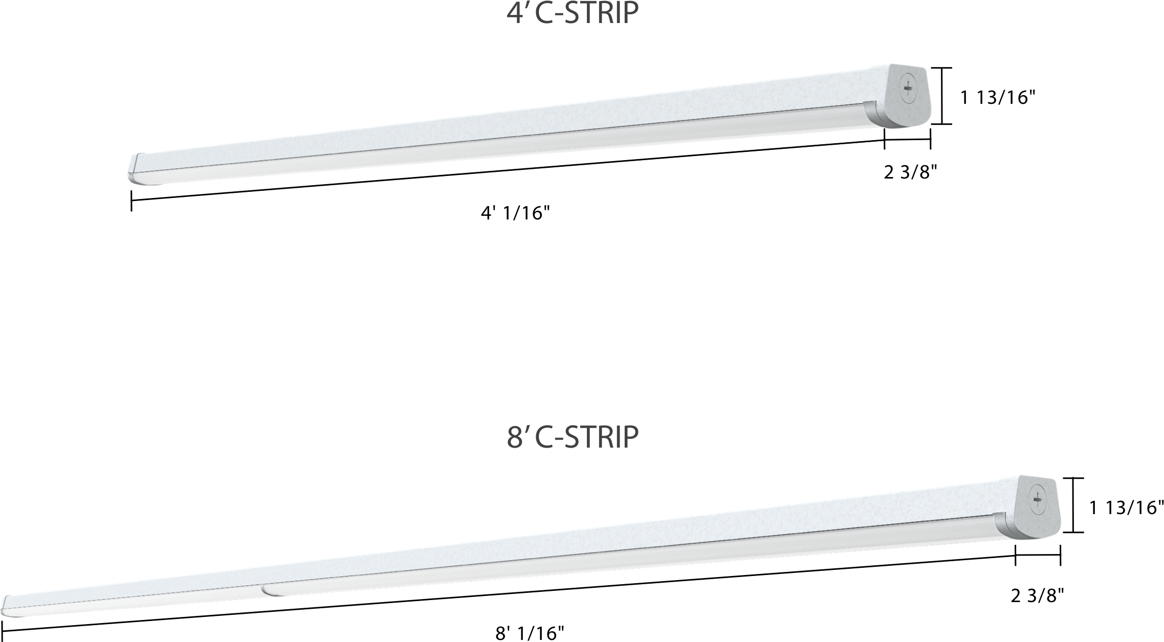The larger model of the C-STRIP was designed with an innovative interior hinge that allows for the fixture to fold in half for transport, drastically reducing packaging materials and shipping/storage space. After unpacking, the C-STRIP unfolds and locks in place for a secure installation.