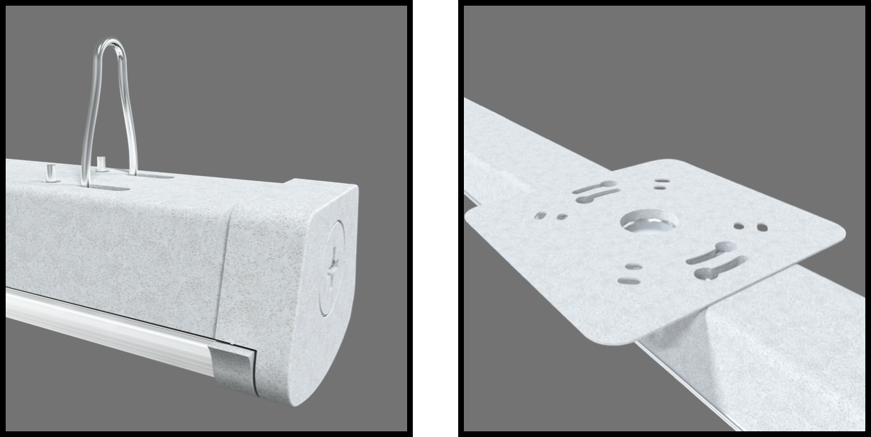 The C-STRIP can be surface mounted or suspended on chains. Hardware is included for both options.