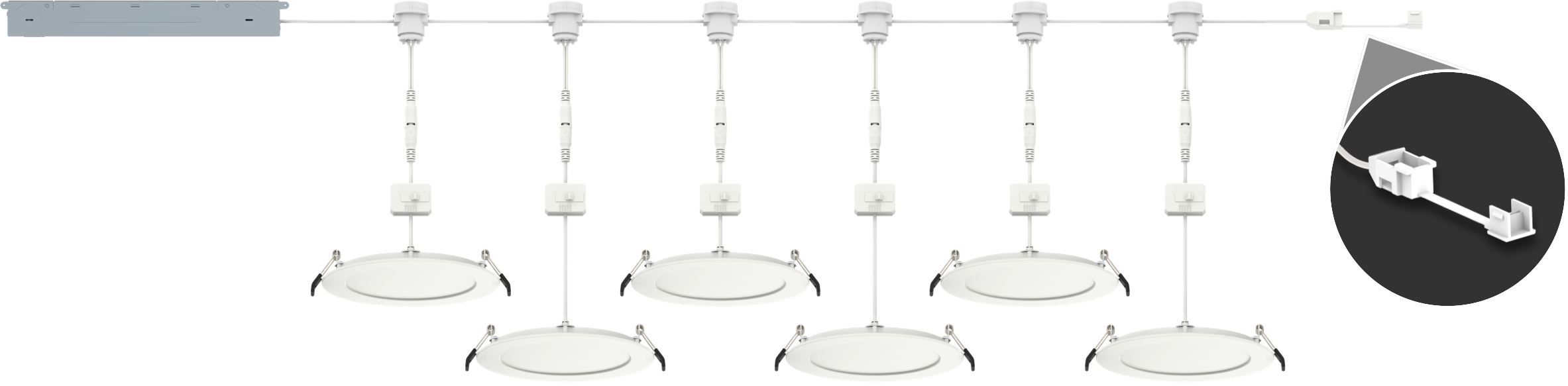 With 6 canless, quick-connect DAISY wafers controlled by only one driver, you'll save on things like housings, wire, clamps, wire nuts, and most importantly, installation time.