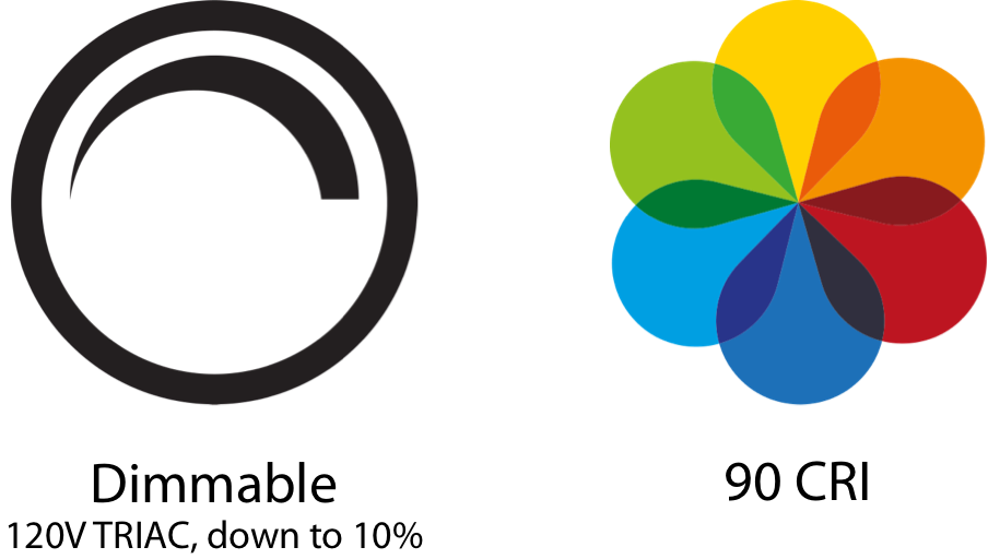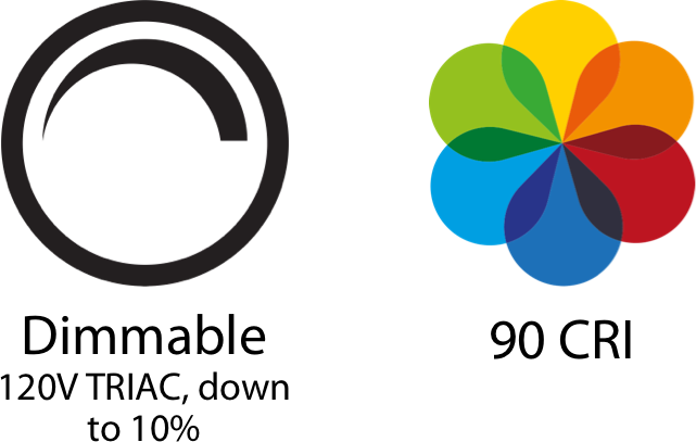 All models are 120V TRIAC dimmable down to 10% and deliver 90 CRI for accurate color rendering.