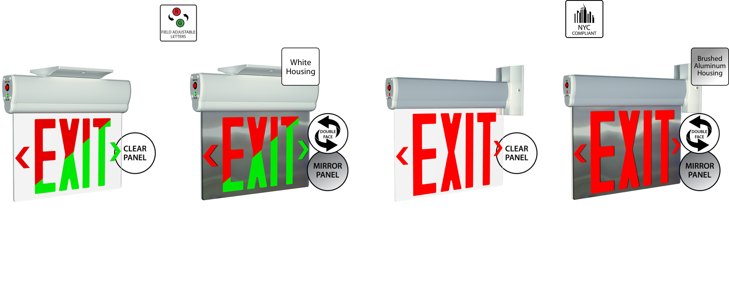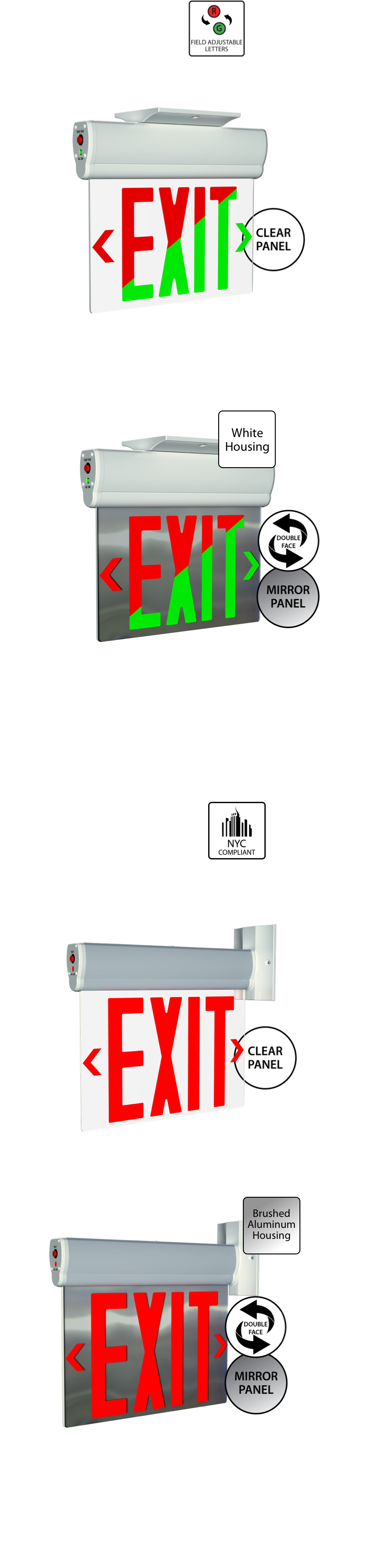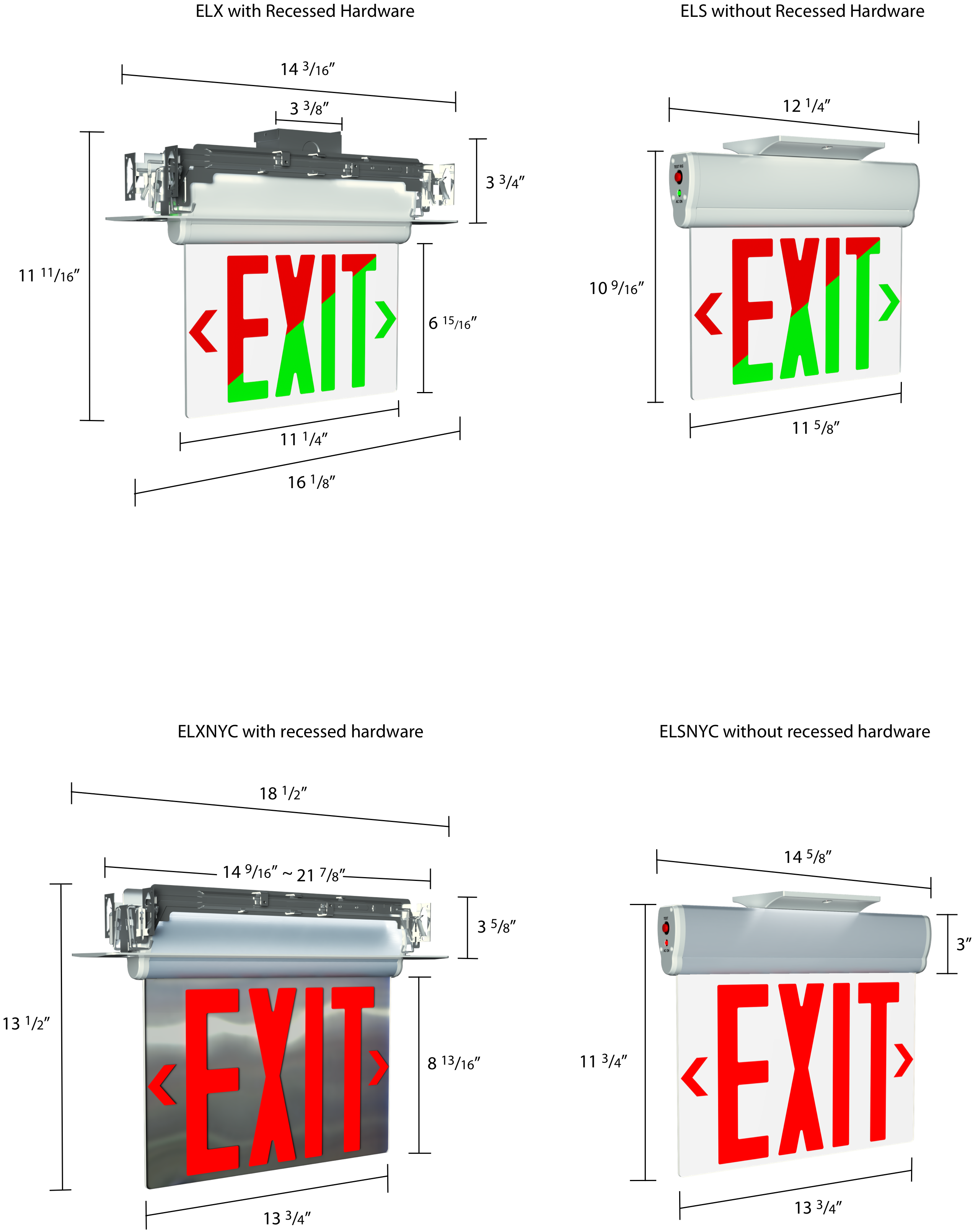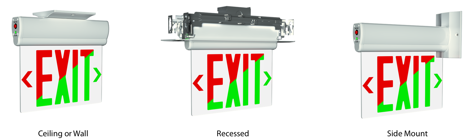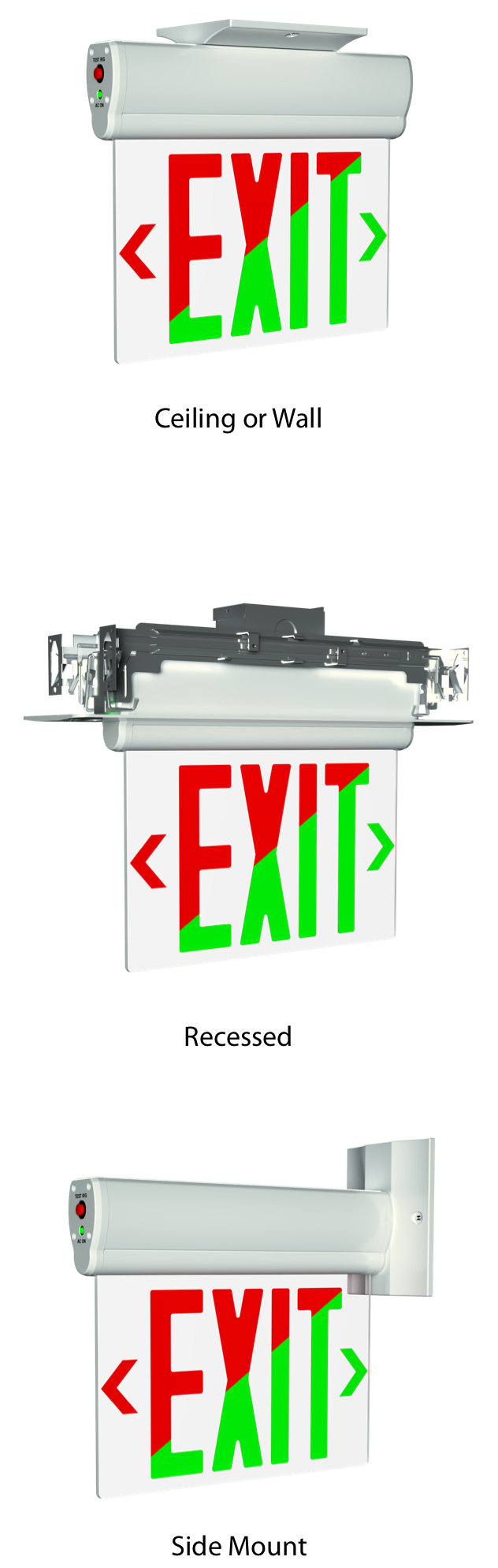 Eliminate the guesswork around exit sign installation. With all the mounting hardware included in the box, you can tackle, wall, ceilling, end, and sloped cieling applications. ELX versions also include recessed mounting hardware in the box. Available with field-selectable red/green letters included making it simple to have the right product on site without the hassle.