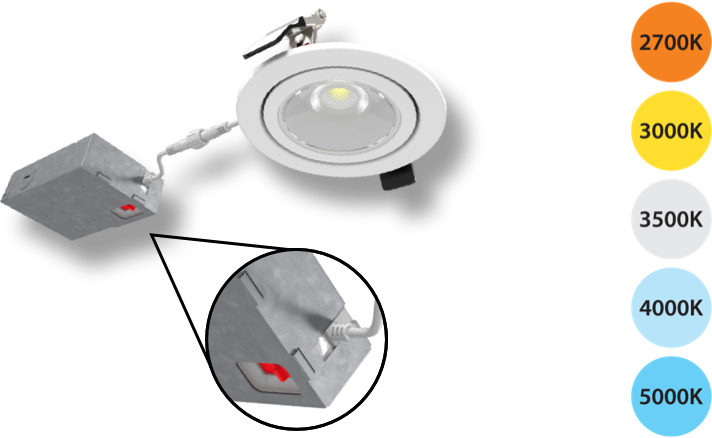 These field-adjustable gimbal downlights allow you to change color temperature (2700/3000/3500/4000/5000K) with the flick of a switch! They’re ideal for both new construction and retrofit applications. Models are offered in 4" (9W) and 6” (14W).