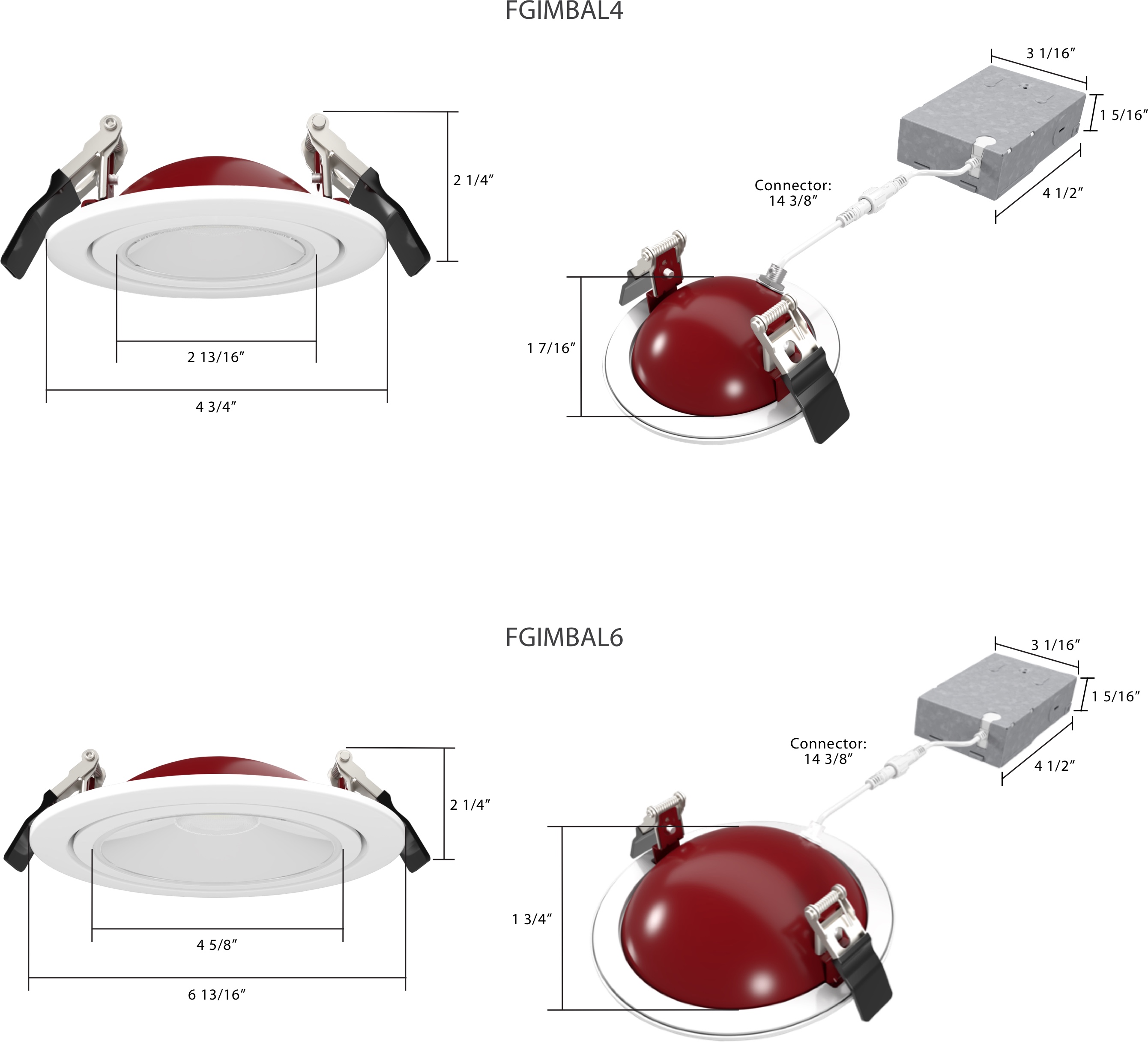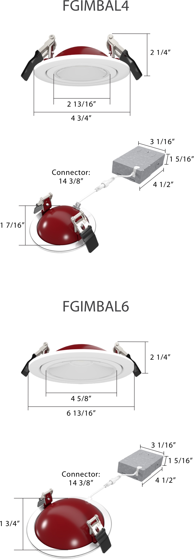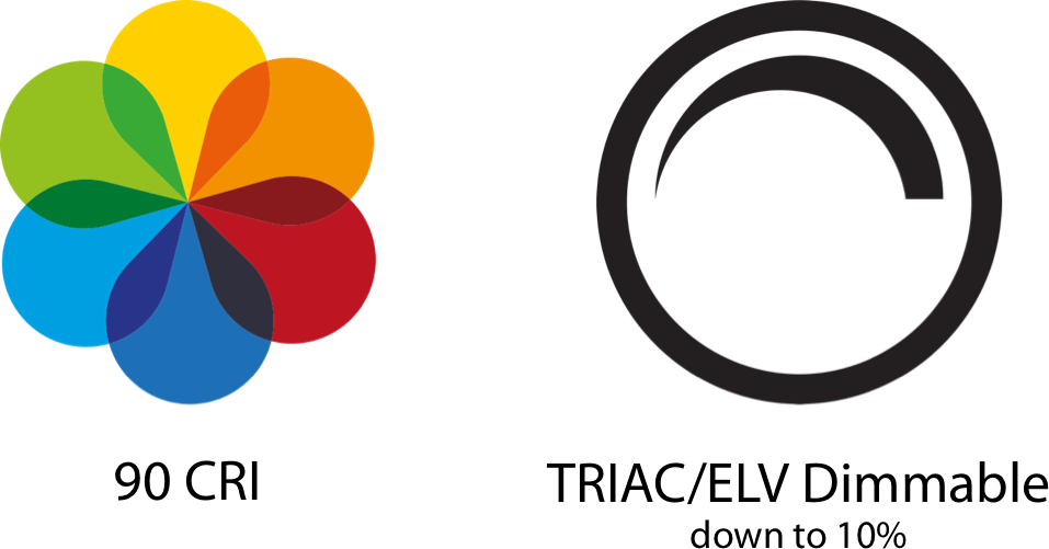 The FGIMBAL is dimmable with TRIAC/ELV forward and reverse phase cut dimmers (120V) —and Title 24 compliant. 90 CRI provides accurate color rendering, making them ideal for commercial applications where color is critical.