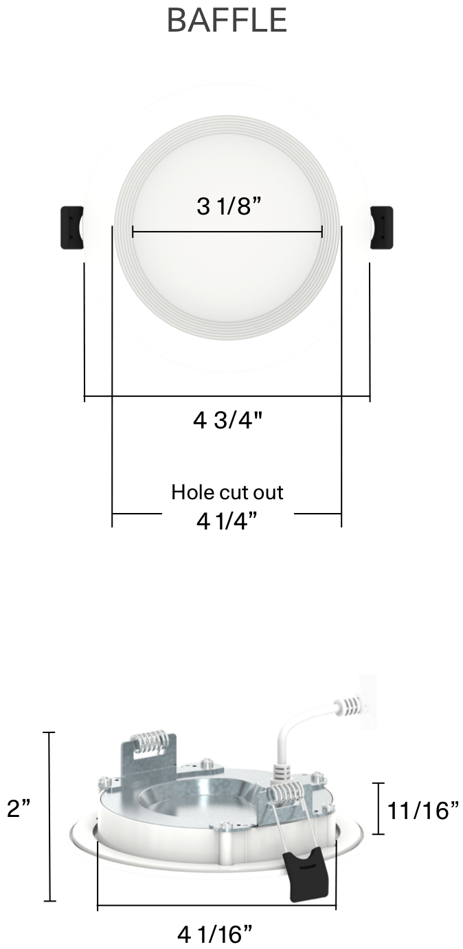 Wafers are available in black or white trims, giving you the flexibility to choose between the seamless, understated look that blends well with standard ceiling colors, or the modern, dramatic look often used in contemporary or industrial-style spaces.