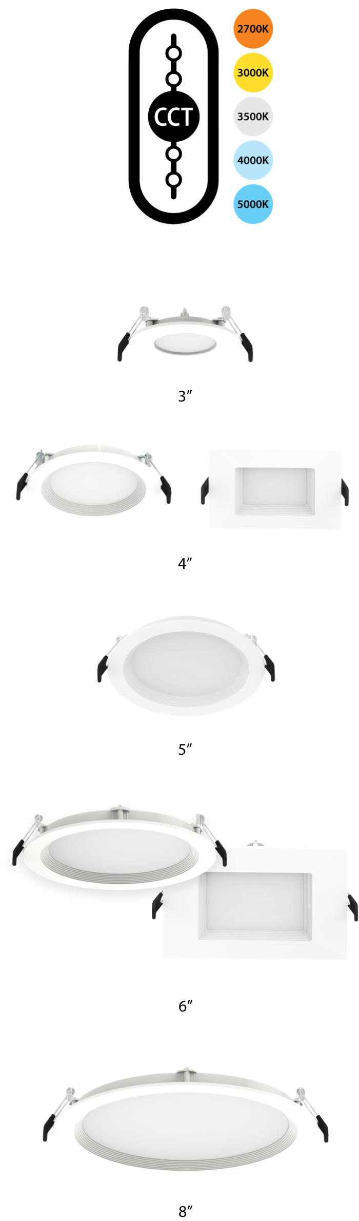 Designed for maximum flexibility, the WFRL family lets you change color temperature with the flick of a switch! Available in 3”, 4”, 5”, 6” and 8” models, they’re ideal for new construction and remodel applications.