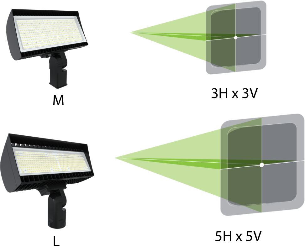 Standard models come with either a 6H x 6V (XS & S) or 7H x 6V (M & L) distribution, but the medium and large models are now also available with either 3H x 3V or 5H x 5V NEMA types, giving you added flexibility with your outdoor applications!
