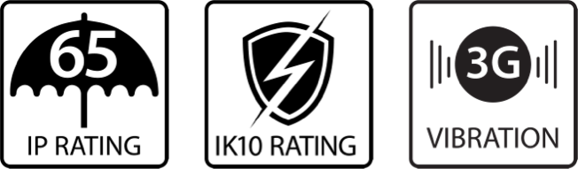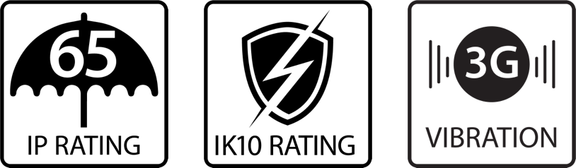 This family of products carries an IK10 rating for strong protection against external impact, making it suitable for use in high-traffic or vandal-prone areas.