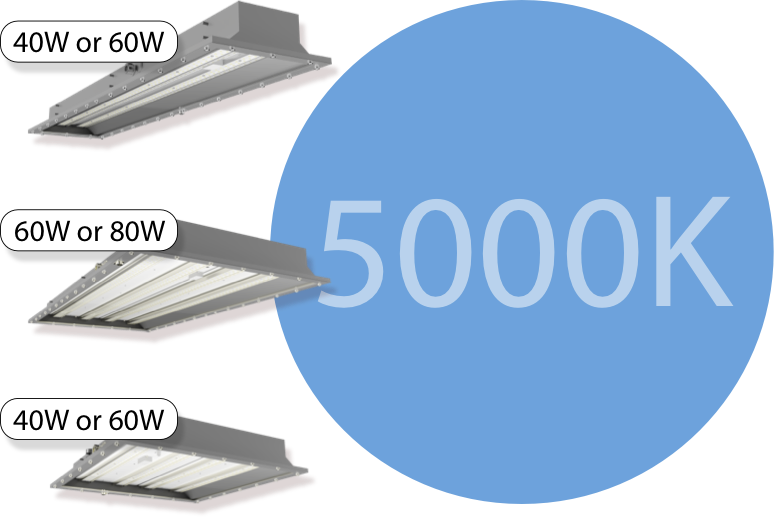 The HAZPAN is offered in 1x4, 2x4, and 2x2 models, each available in two wattages and a bright 5000K for maximized visibility. Battery backup is available for all three sizes.