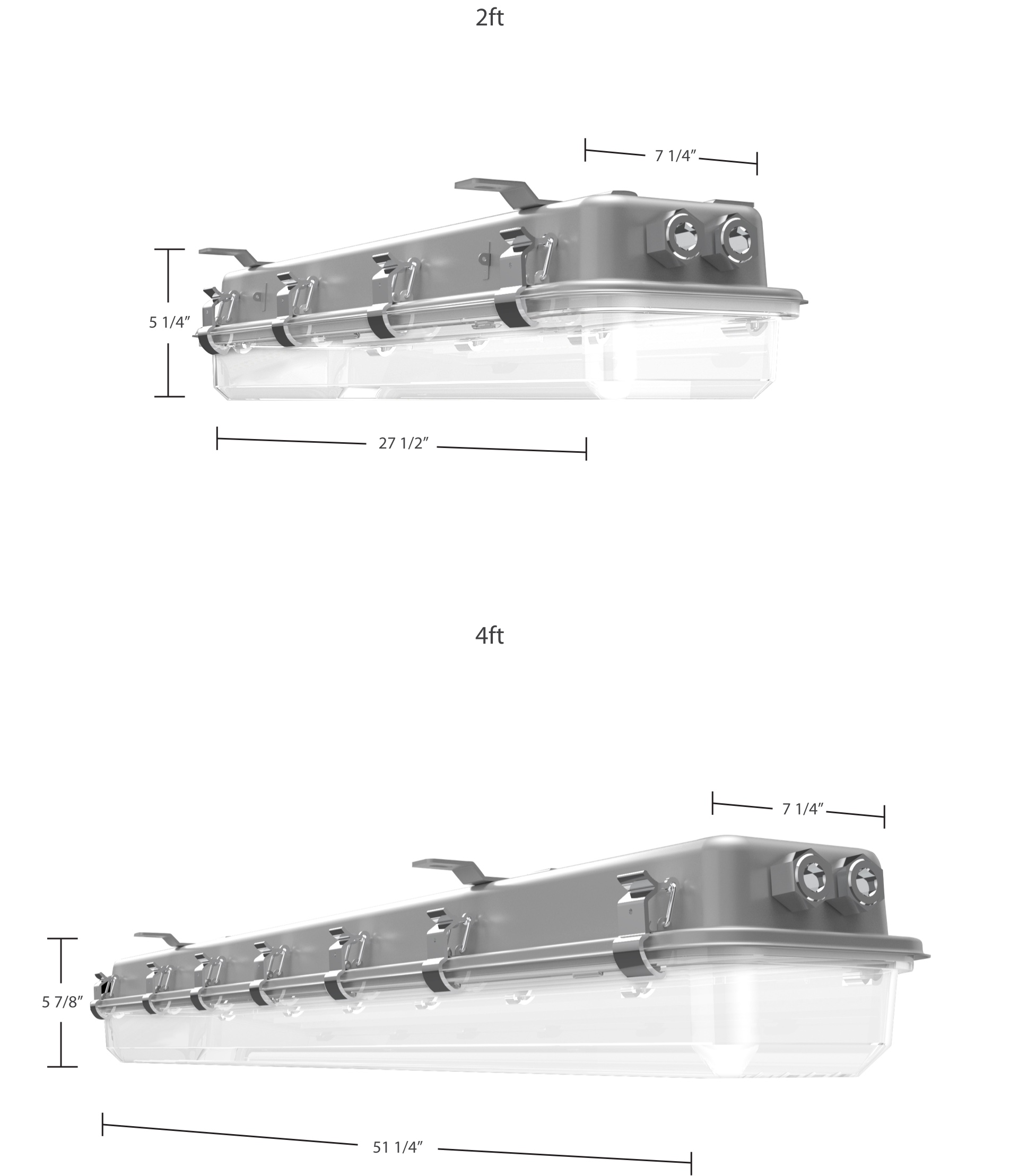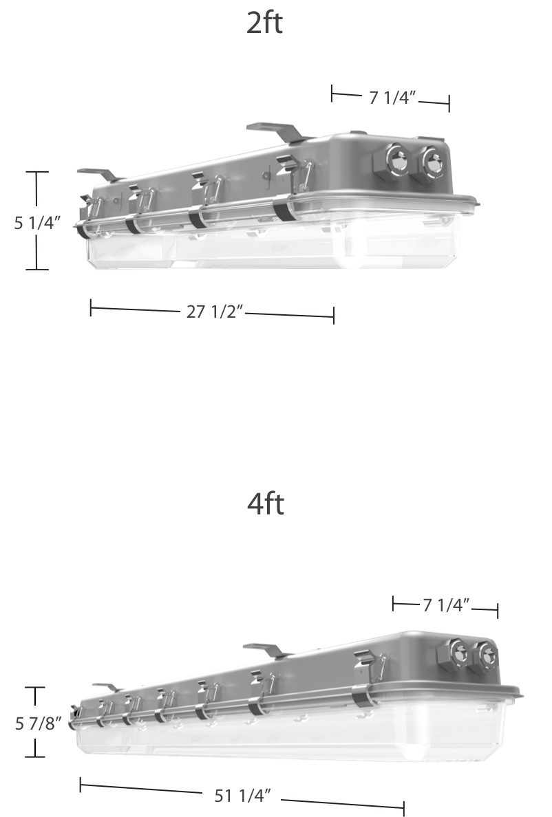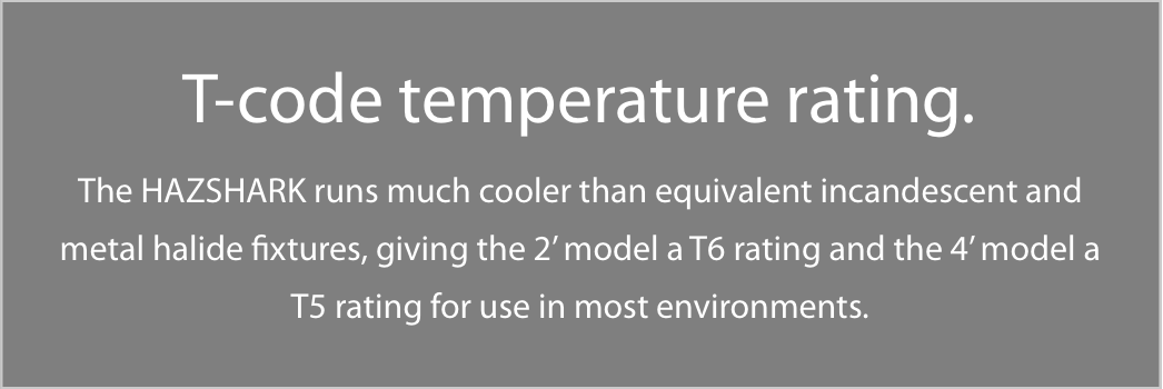 Available in 2’ (30W) and 4’ (50W) in 5000K, the HAZSHARK is waterproof, vaporproof, and corrosion resistant, with a stainless steel housing and an impact-resistant polycarbonate lens.