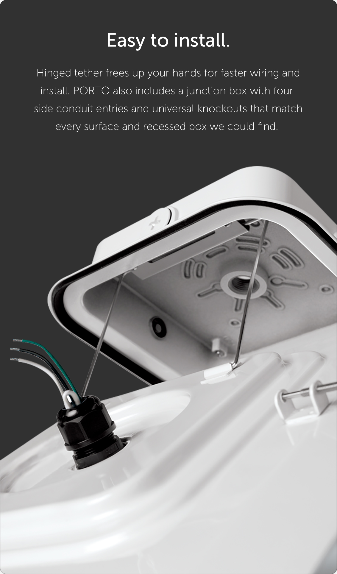 PORTO is available with an optional integrated motion sensor and photocell that ensures the fixture is on when it's needed and dimmed or off when it's not, delivering safety and security with ultra-efficiency.