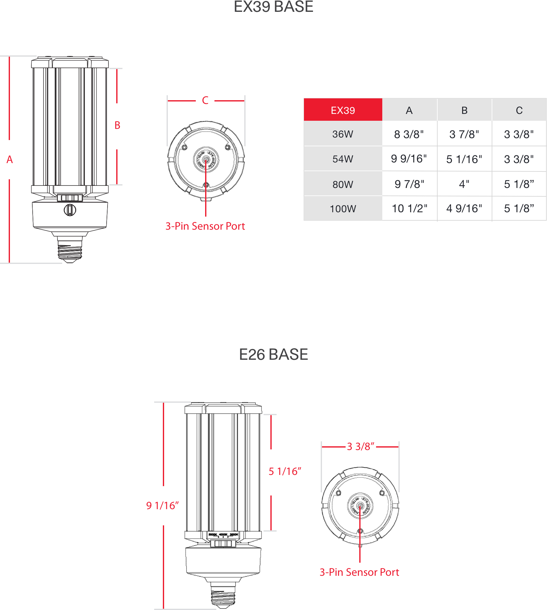 All models have a 360° beam spread, making them versatile enough for universal installations* (base up, down or horizontal).