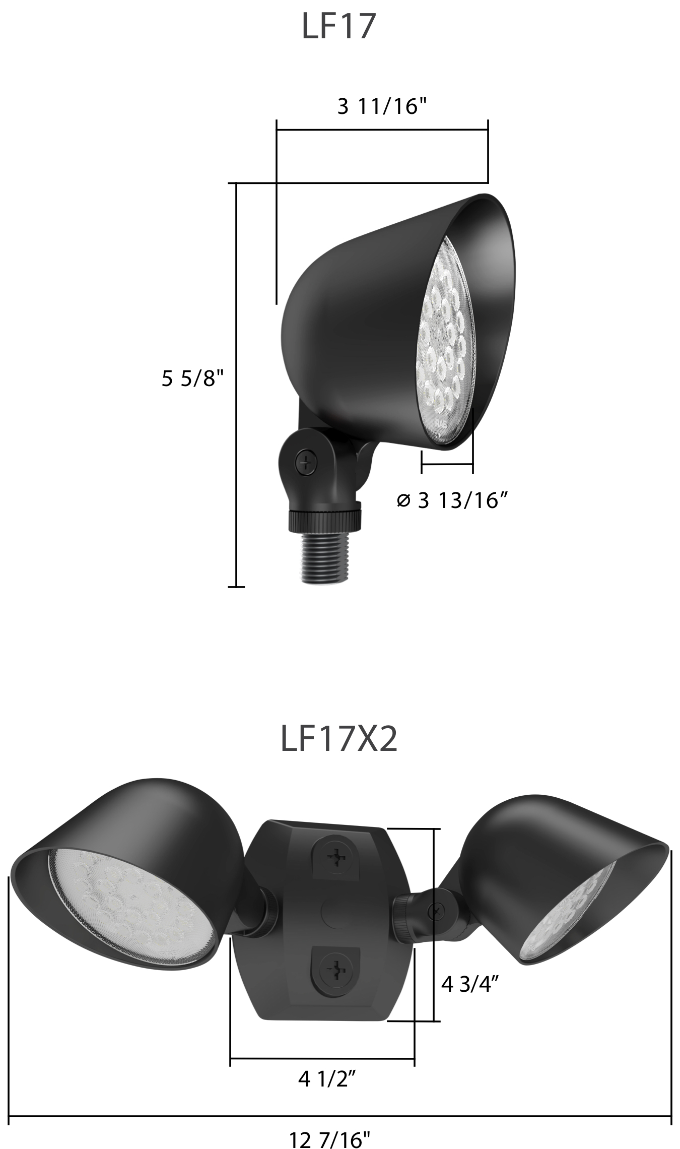 Sometimes, you need two floods to get the job done, so the LF17 is available in dual-configuration models with or without our integrated SMS500 motion sensor for 180° detection at a distance of up to 30 feet.