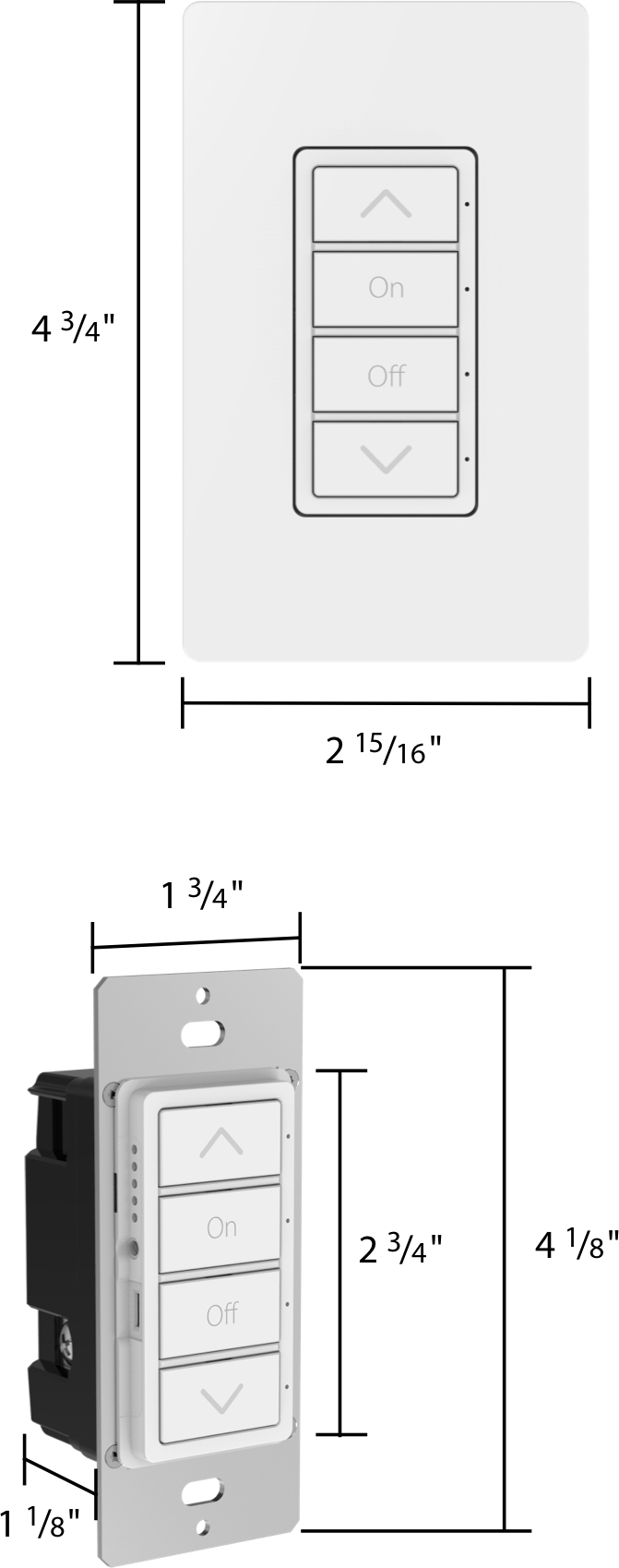 Customizing button commands on the Keypad is a breeze. Set them to switch lights on/off, dim them up/down, change the CCT and/or RGB color, and create Scenes for maximum control. Each button can control up to 3 Areas.