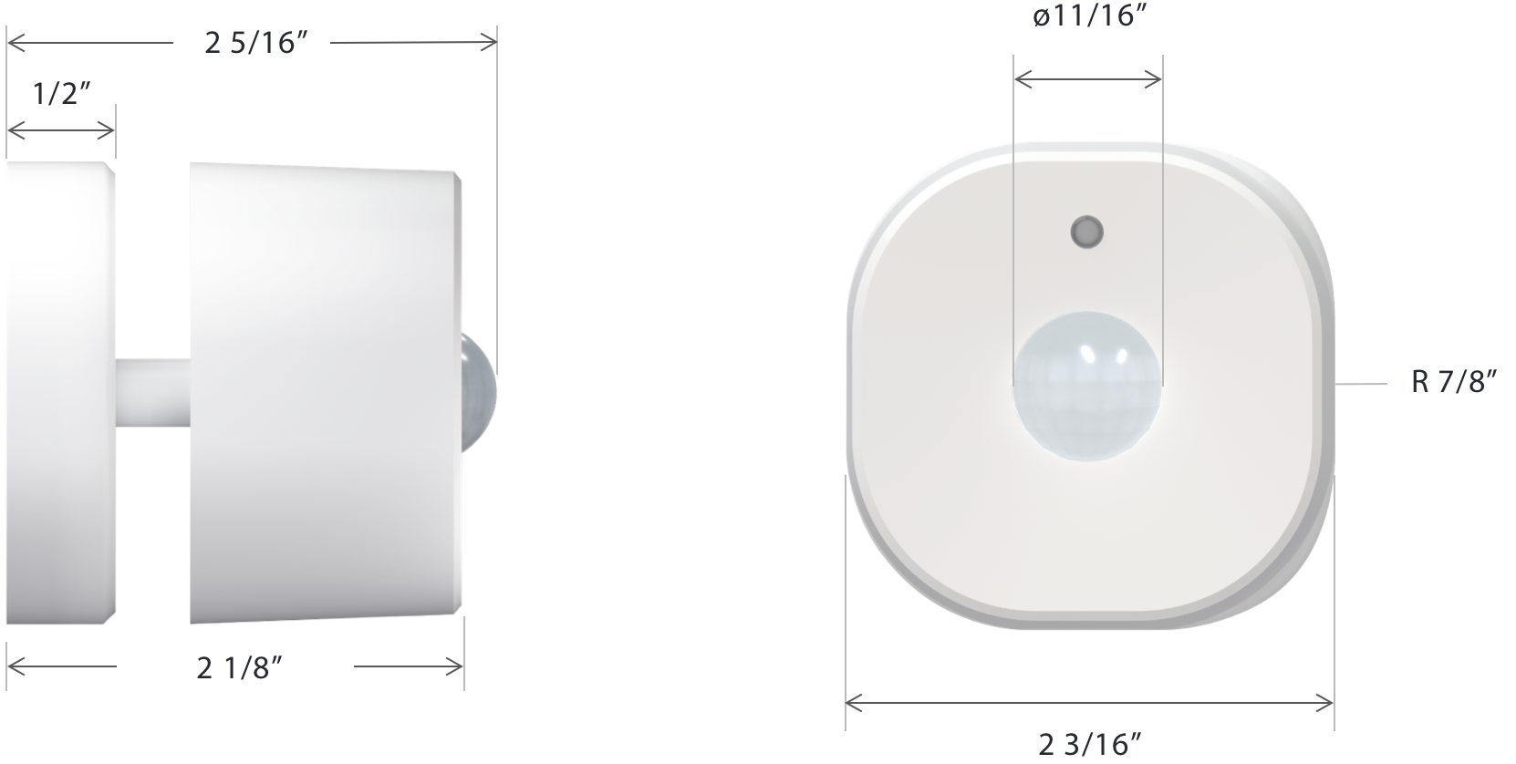 The Wireless Occupancy Sensor has passive infrared (PIR) technology for small movement detection. These sensors are best suited for smaller, rectangular, open areas such as kitchens, dining areas, closets, and more.