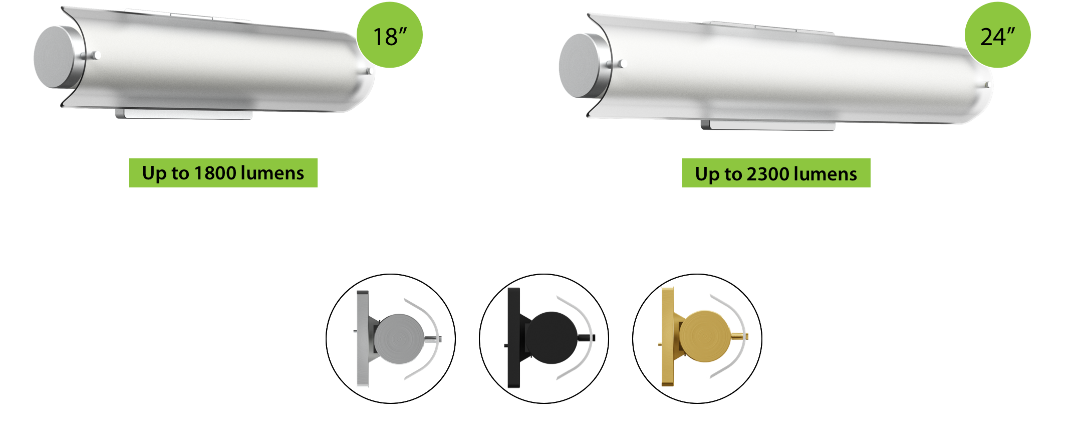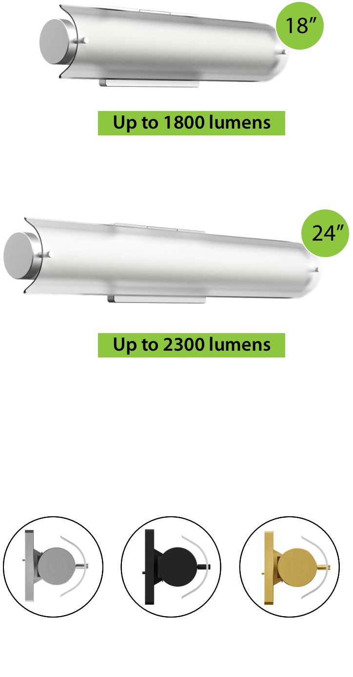 Available in both 18" and 24" lengths with your choice of brushed nickel, classic brass, and sleek black finishes, these fixtures bring modern elegance to any space.