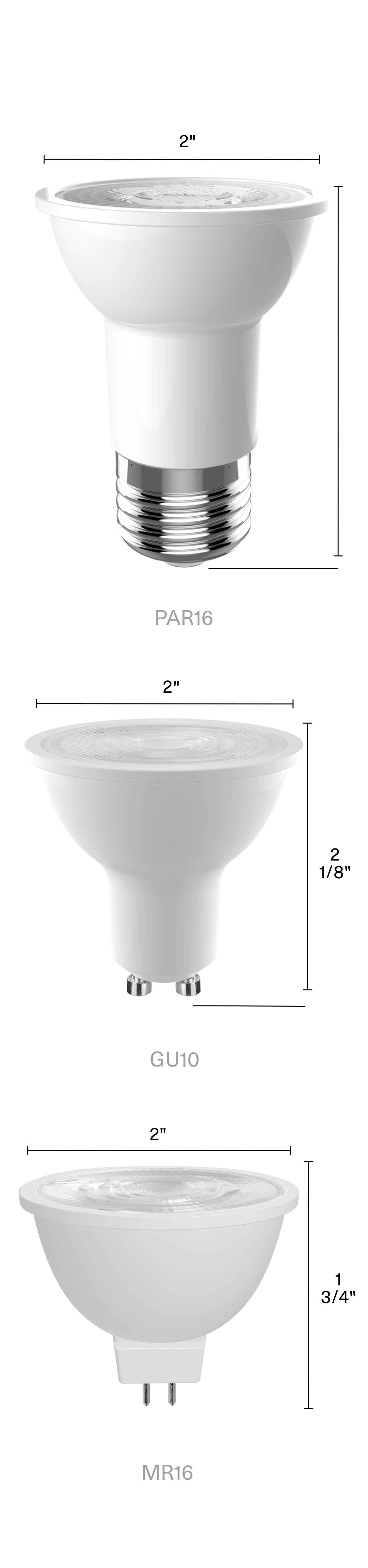 Small reflectors are available in three common for factors - MR16, GU10 and PAR16. As a 1:1 replacement for conventional halogen lamps, they come in a variety of wattages, beam angles and CCTs for maximum flexibility.