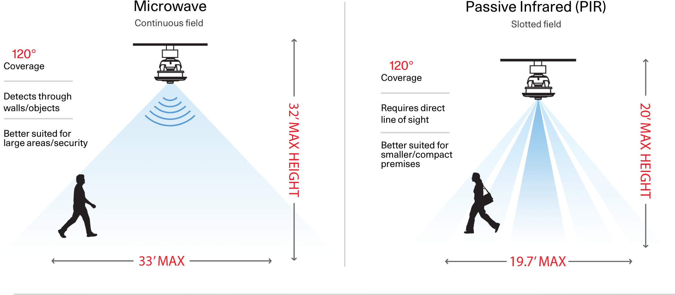 RAB carries both microwave and PIR (passive infrared) occupancy sensors, to make smart choices a breeze. Regardless of your application, your detection needs or the size of your space...we've got it covered.