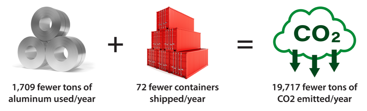 Ocean transport from suppliers is a less carbon-intensive method than air. On average, shipping an item by sea rather than by air reduces transportation-related emissions by 95%.