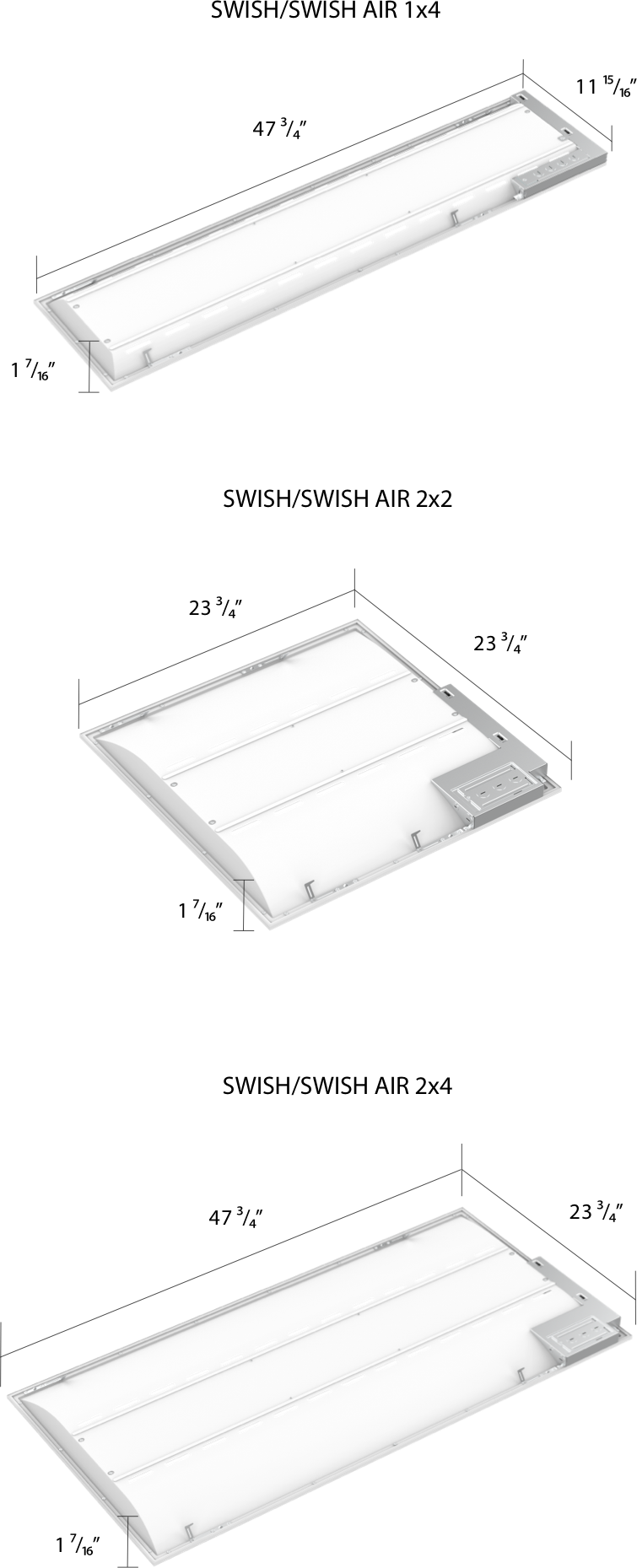 Available in three sizes, all SWISH AIR models include three field-adjustable wattages and CCTs that easily adapt their output to changing space requirements, eliminating the need for different SKUs.