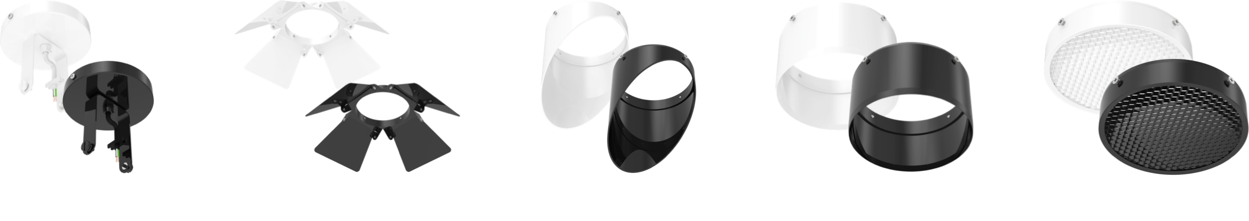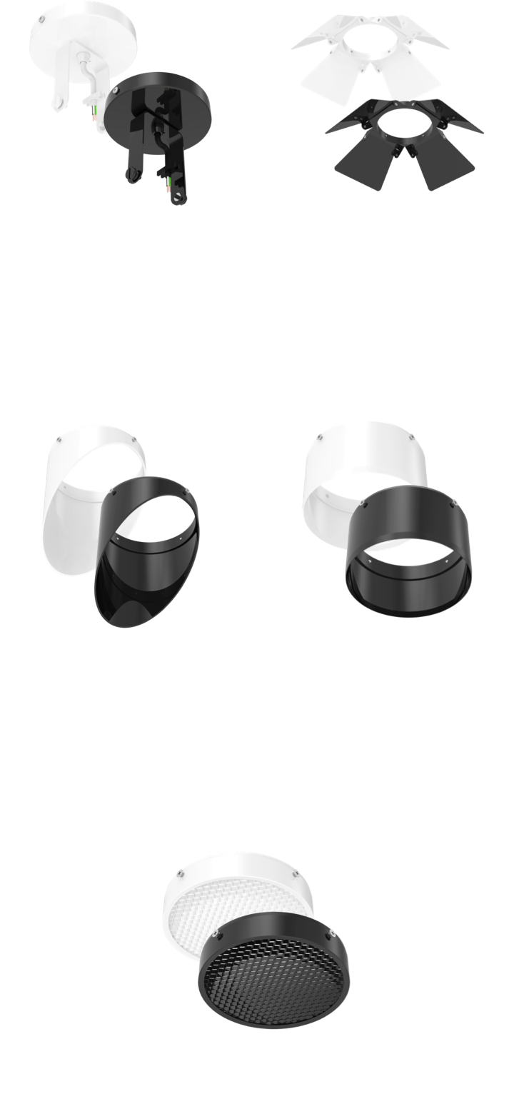 Enhance your lighting design with a complete suite of accessories designed specifically for the TRACK22—from ceiling mount kits and barn doors to honeycomb filters, wall washers, and snoots.