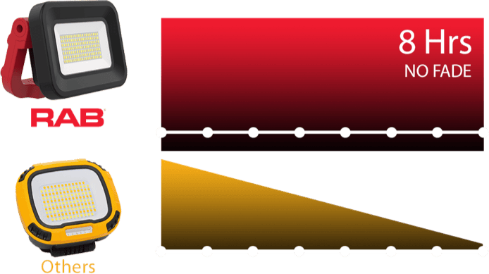 The RAB 3-year, no-comrpomise warranty driver perfromance, product components, and paint finish. RAB's warranty is subject to all terms and conditions found at rablighting.com/warranty.