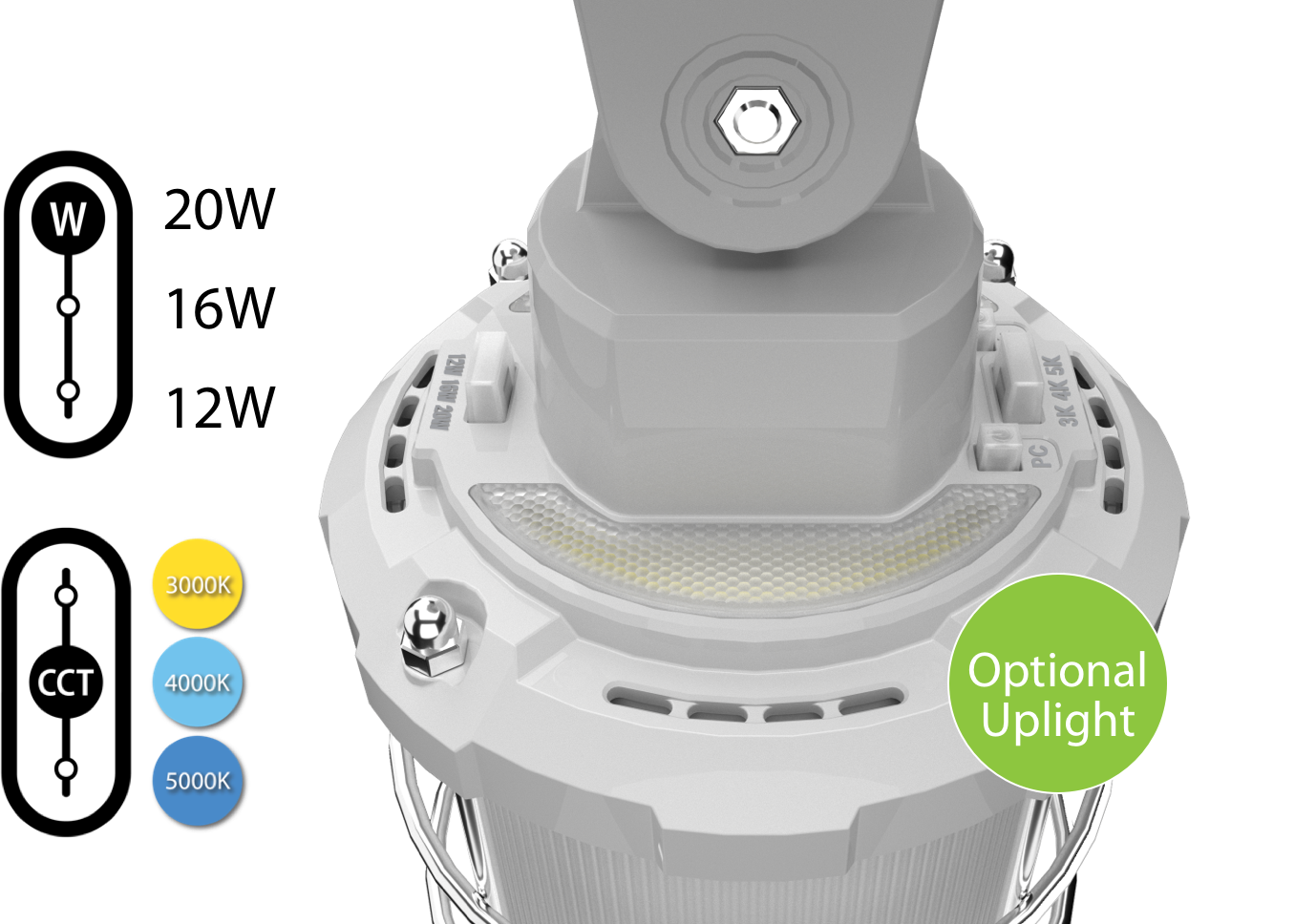 Our upgraded vaporproof VX line now offers field-adjustable wattage and CCT, and the ability to choose between downlight or uplight/downlight output—giving you eighteen possible configurations from a single SKU! VX also includes an on/off photocell.