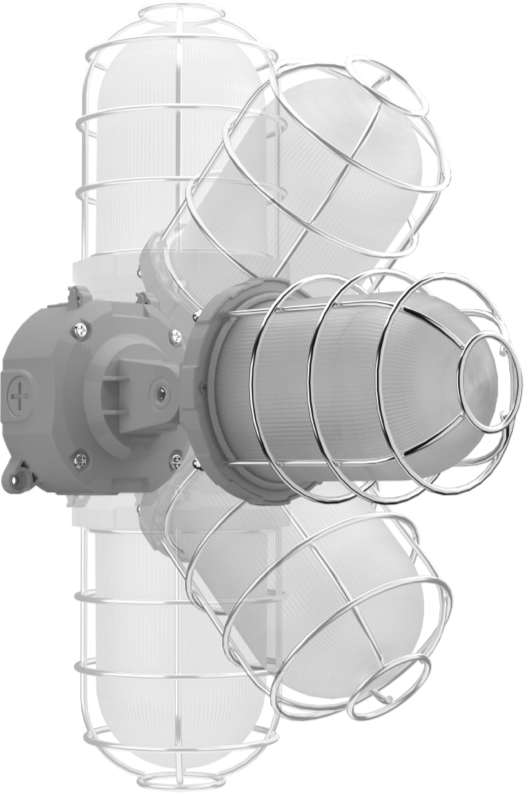 The new VX is our first composite vaporproof product. It features a polycarbonate housing, a shock-resistant lens, a rugged wire guard, and a rust-resistant finish that makes it perfect for marine environments. Its IP65 rating stands up to harsh conditions and makes it a reliable light source in tunnels, industrial sites*, subways, and other challenging environments.