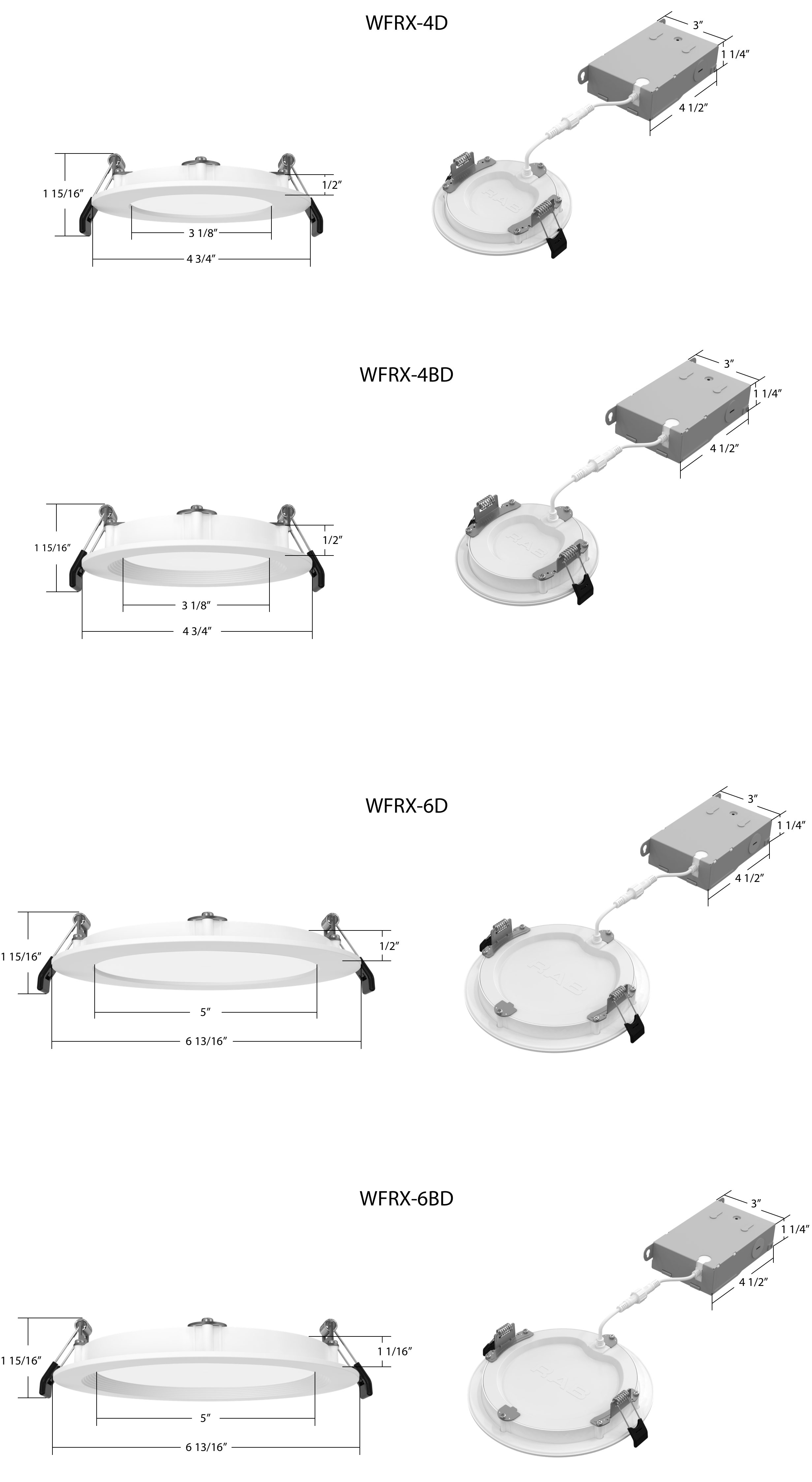 Designed for maximum flexibility, the WFRX family lets you change color temperature and wattage with the flick of a switch! Available in 4” and 6” models, they’re ideal for new construction and retrofit applications.