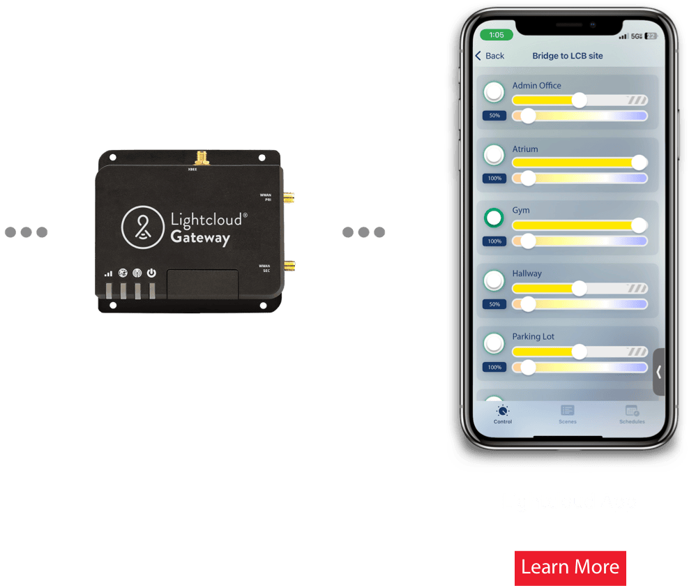 The XDIM Bridge easily connects your Lightcloud Blue area to a Lightcloud Gateway, gaining you access to a complete suite of premium features including remote access, BACnet integration, demand response, and user permissions.