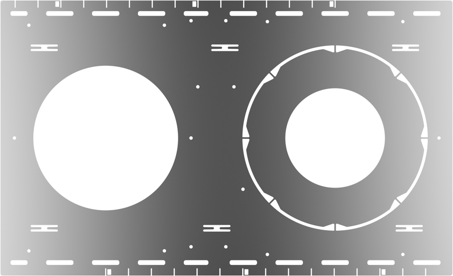 New construction plate for stud/joist mounting. Removable circular knockouts. Fits up to 24" stud/joist spacings.