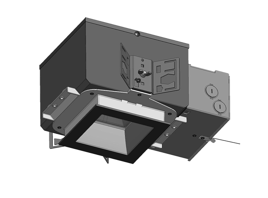 Housing includes nailer bars and butterfly brackets. Brackets also accommodate mounting with 1/4" to 1/2" bar stock, C channel or 1/2" conduit.