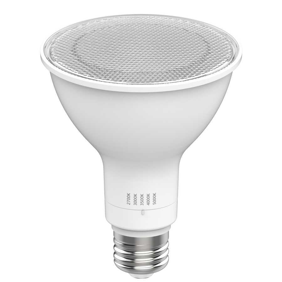 Replacements for HID commercial PAR lamps. Dimmable CCT-adjustable lamps that are wet rated and great for use outdoors.