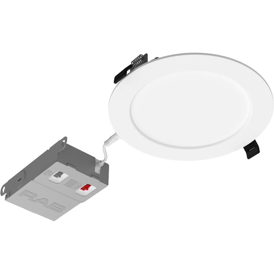 4" and 6"wafers with selectable wattage and CCT that boast 90 CRI. Designed for 120-277V use and TRIAC/ELV dimming. Available with smooth or baffle trim.